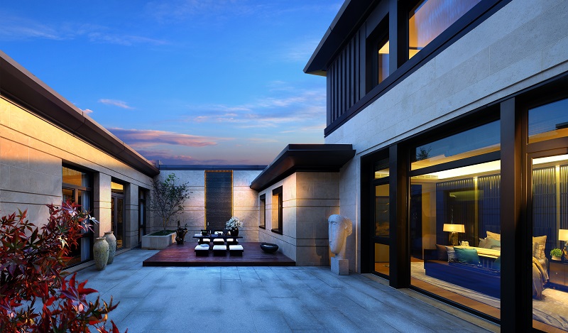 北京中糧·瑞府位于朝陽區孫河板塊,臨近地鐵15號線孫河站。中糧·瑞府以當代中國建筑為藍本,把園與府的理念重塑到當代別墅當中。從平面布局上看,中糧·瑞府一個最為明顯的特征就是大院子,采取“回”字型院落設計,院子只有兩層,單層面積寬綽,私密性較好。