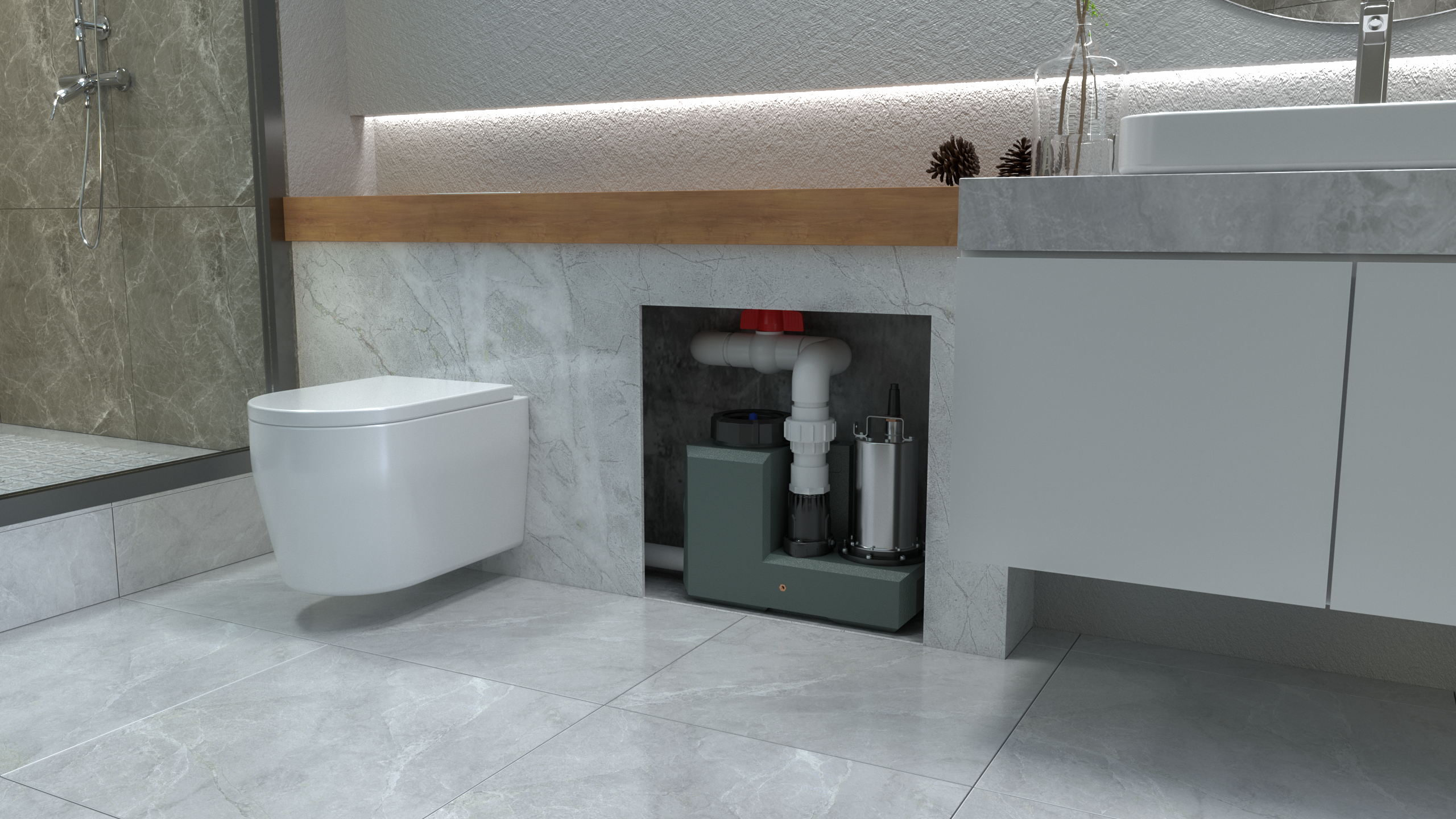 但是設計了衛生間的同時不要忘了設計排水系統,要不然后期再加就麻煩一點了,前期設計好排水管和電源后,我們在后期安裝污水提升泵排水的時候就方便了很多,污水提升泵針對這種單個空間的排水,一般體型不會大,像是750這種的,可以隱藏安裝在柜子內,或者安裝在假墻內,非常方便的,只要留好檢修口就可以了,因為這種外置泵的設計我們在維護時無需開蓋拆箱,只用檢查外部的水泵和控制就可以了,這樣異味也不會因為拆箱而擴散到地下室了,尤其是我們還能通過手機聯網遠程控制,外出在外也能隨時掌控地下室的排水情況,就算水閥美觀也是不用擔心的。