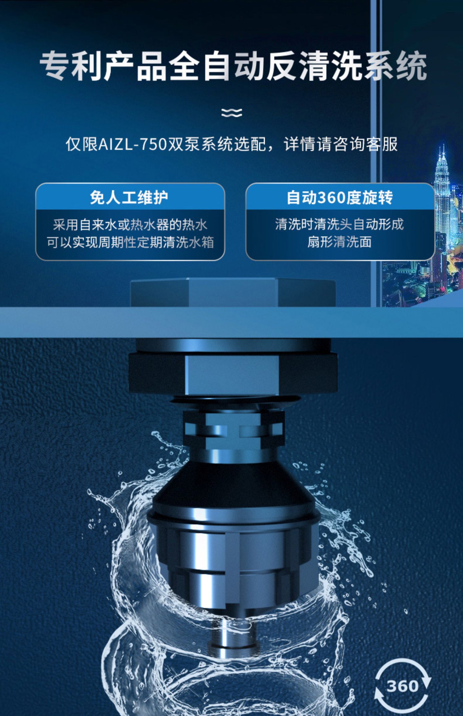 再就是智能污水提升器采用了真正意義上的反清洗設計,利用自來水管中的干凈的清水清洗水箱的內壁,根據我們的需求設計反清洗啟動的時間和周期,真正免去了人工的維護,做到了箱體的自清潔,不用擔心定期的清理問題了。