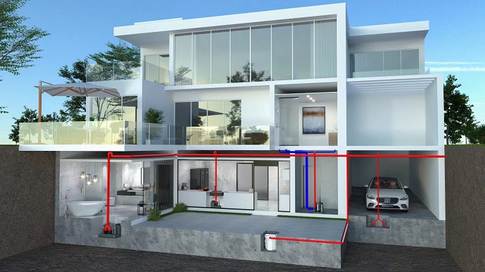 針對室內空間,不同的排水需求,比如衛生間,廚房,洗衣房,茶水間等等,都有相應的污水排水設備去解決;針對室外空間,戶外花園庭院雨水,則有相應的雨水排水設備。