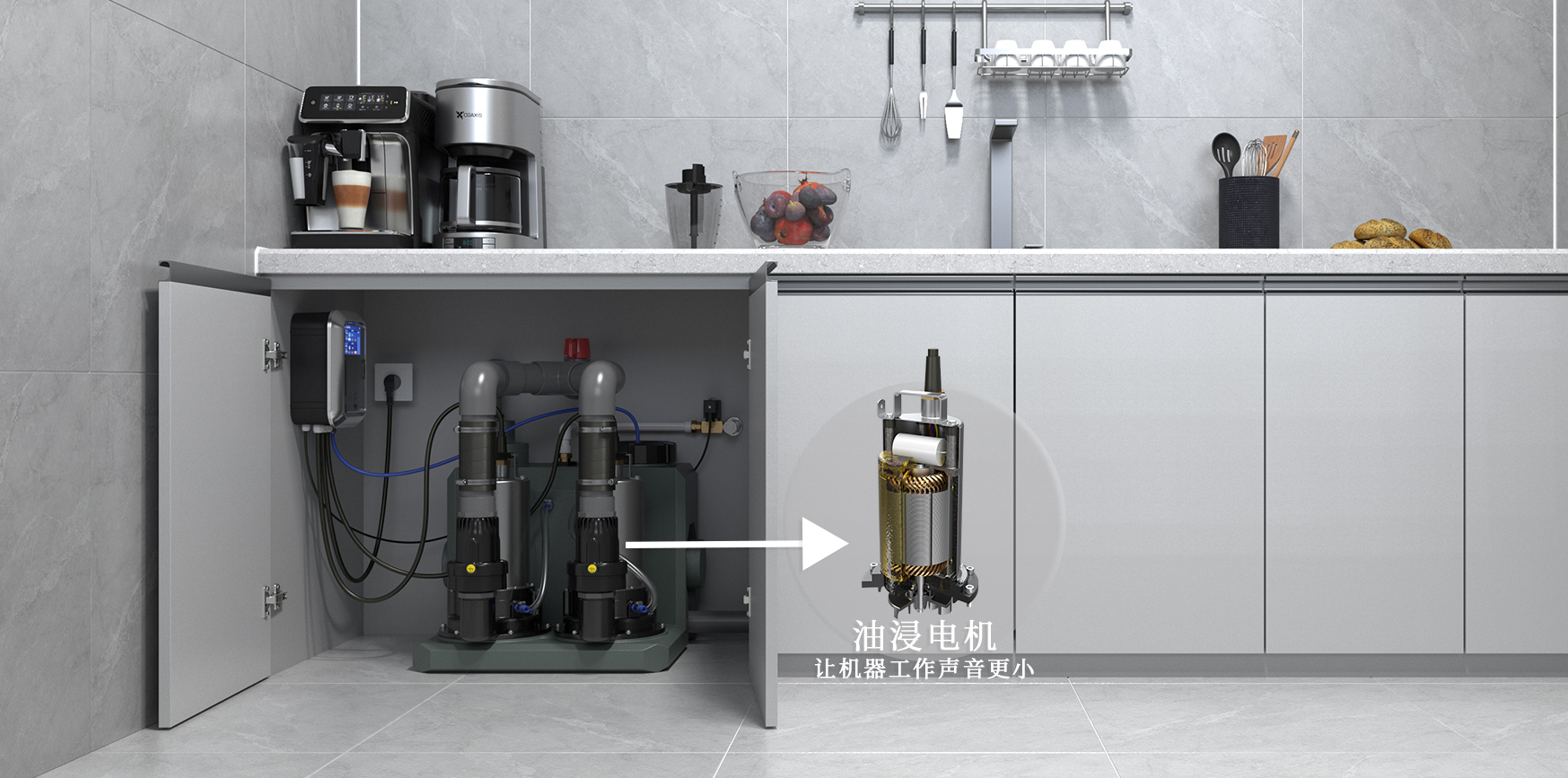 二.智能污水提升器在靜音排水的方面做了又一大升級,也就是超靜音排水,這要歸功于電機的油冷方式,通俗講就是電機的內部(線圈和轉子)是整個沉浸在礦物質油中,電機在運行的過程中產生的多余熱量會被吸收并且降低了電機的運行噪音,實現了靜音排水的目標。