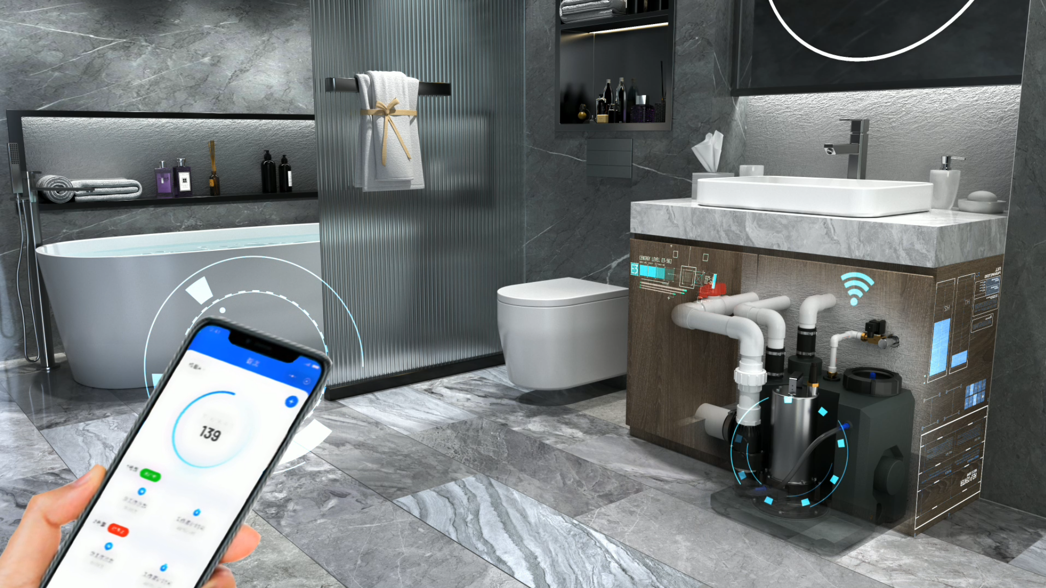 排水點不多,一臺小泵就足夠了,像是750系列,體型小和安裝方便,滿足不同的設計需求,可連接后排式馬桶也可連接側排式馬桶,馬桶,淋浴,洗手池的排水一臺就能一塊兒解決了,并且下置式研磨切割的設計有效避免堵塞問題的發(fā)生,反沖洗的設計可以自動維護水箱內(nèi)部,不用人工維護,排水時會自動啟動清潔,不排水的時候也可以手動/手機控制啟動反沖洗自清潔,氣動的控制也是更加穩(wěn)定。