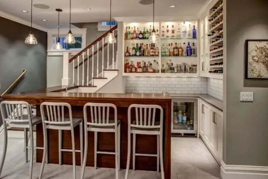 這時候只需在地下室安裝一個污水提升器解決掉吧臺的排水問題,這一切的設想就水到渠成了。