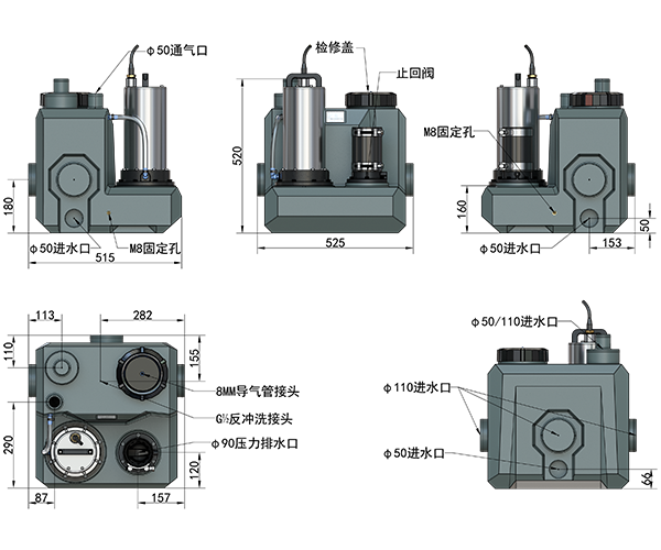 · 入水口:3×φ110,3×φ50,1×φ50/110