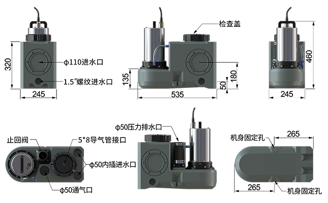 -  入水口:3×Φ110,5×Φ50